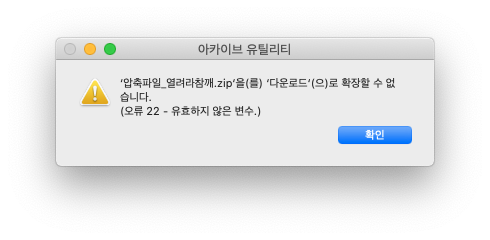 macOS Catalina로 업데이트된 이후 압축파일 해제 시