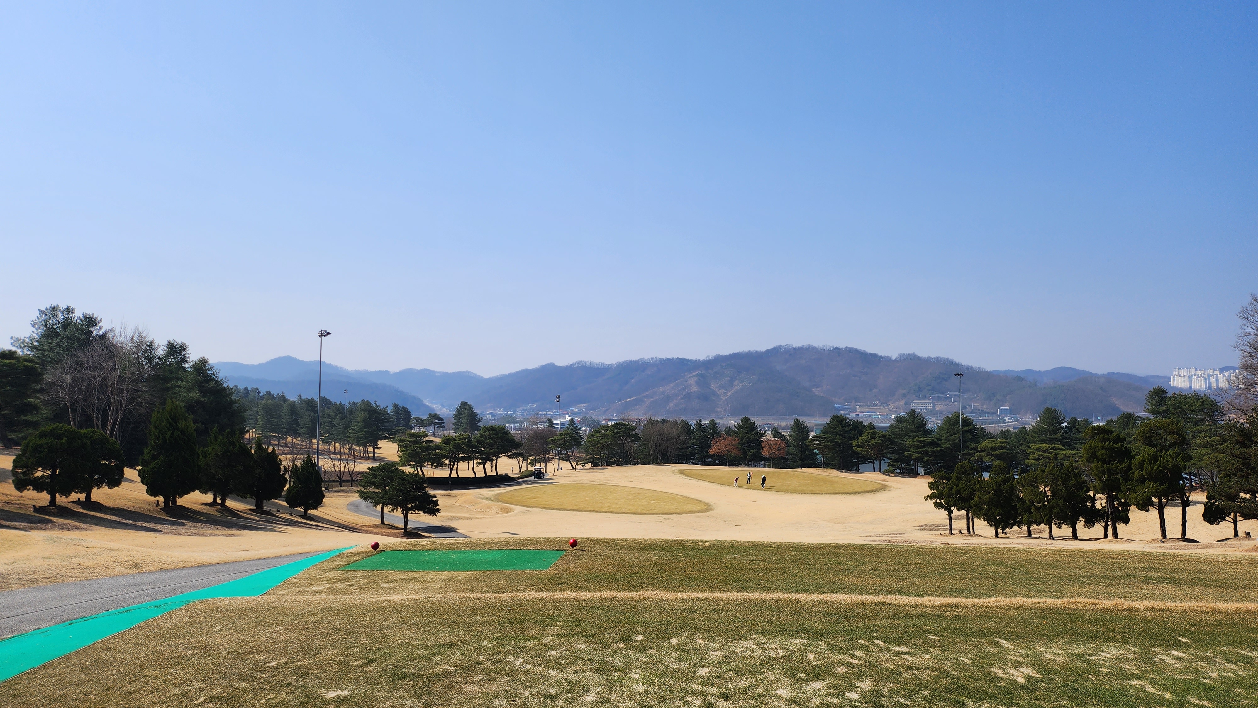티잉 구역 일부는 매트가 깔려있고 햇살이 잘 드는 곳은 잔디 티샷도 가능했습니다.