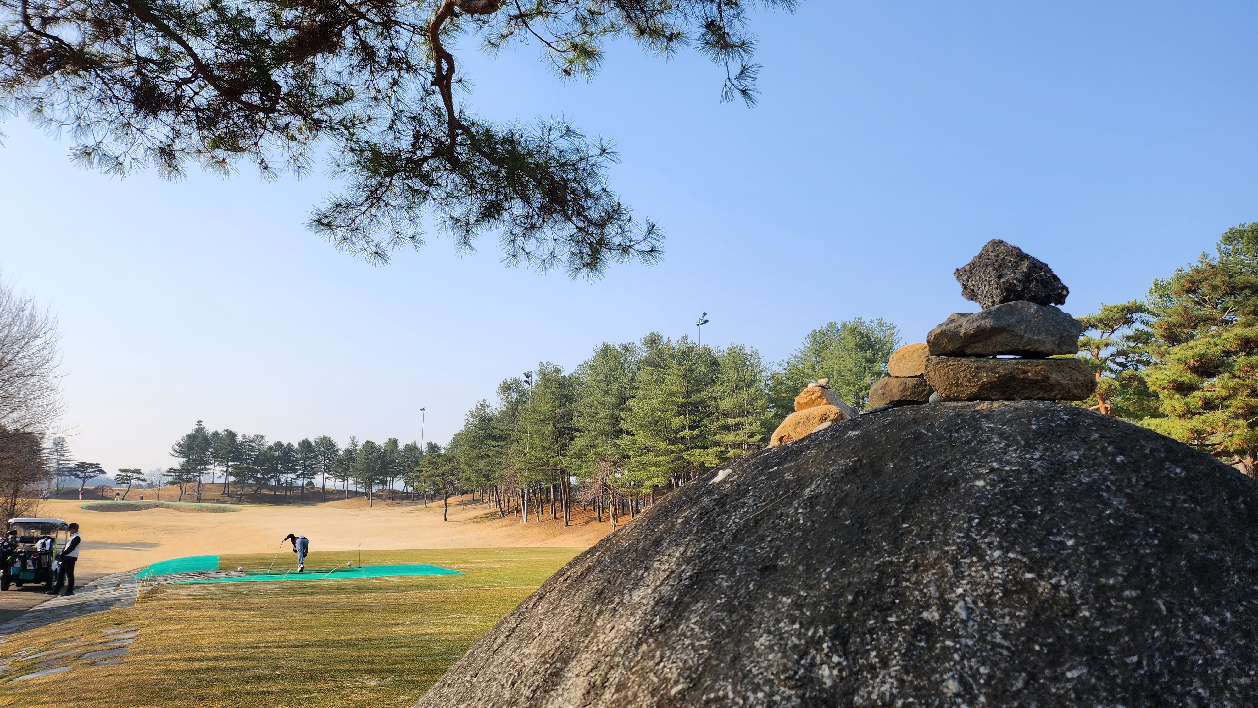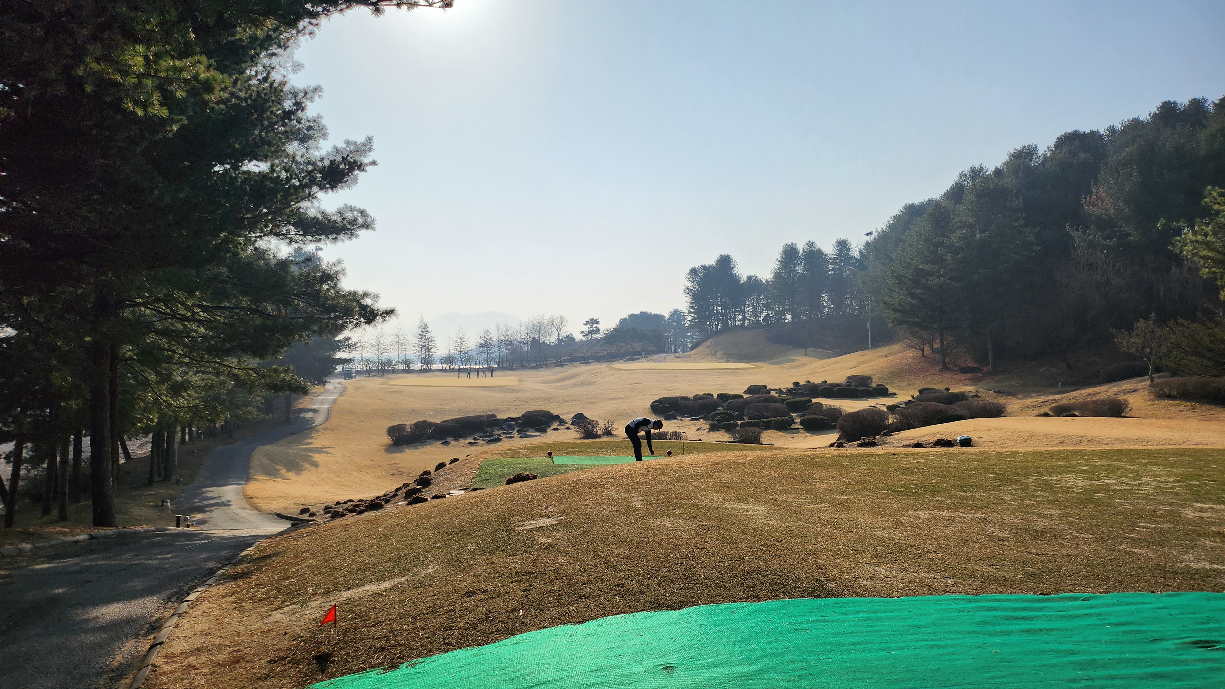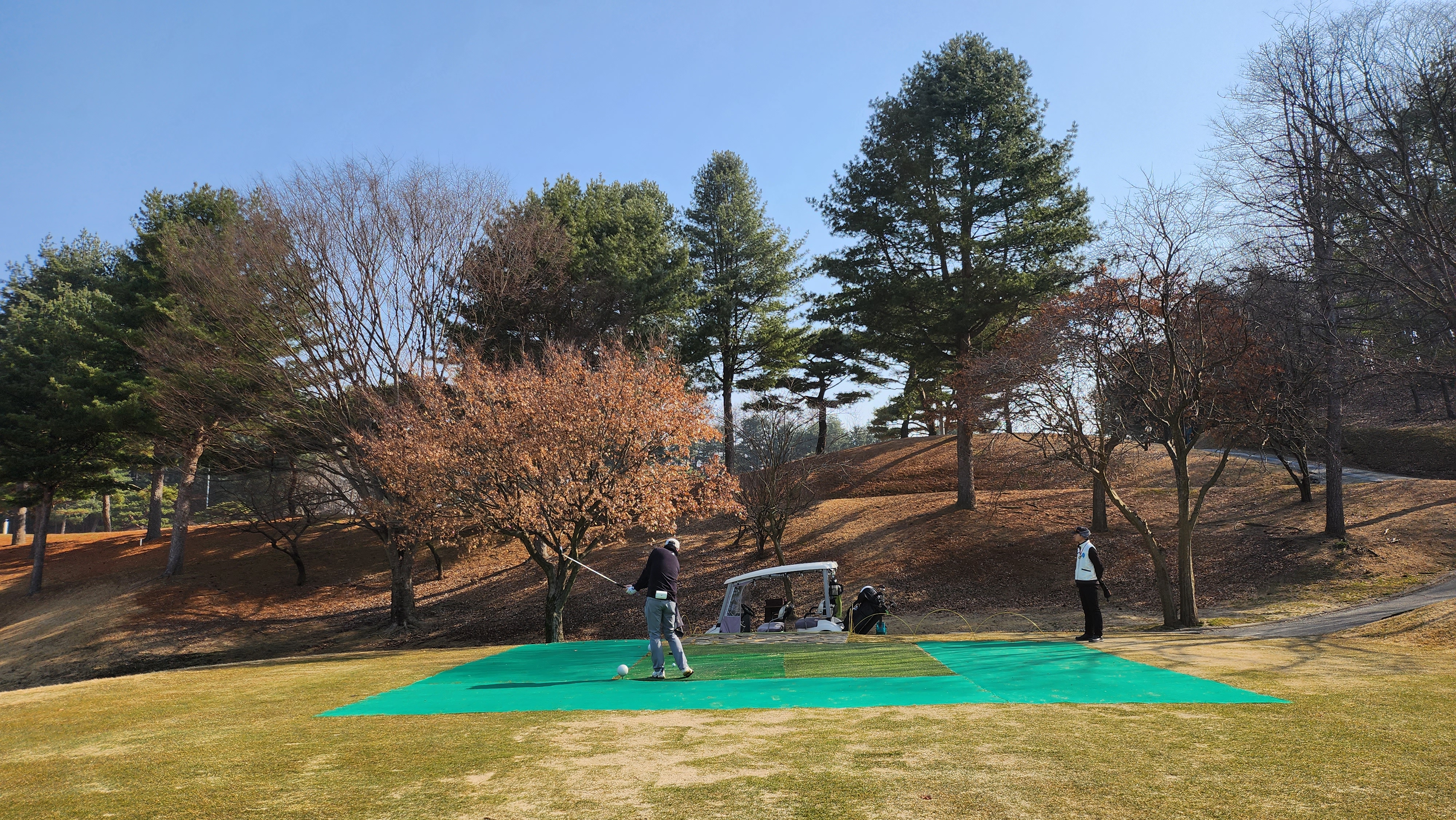 티잉 구역 일부는 매트가 깔려있고 햇살이 잘 드는 곳은 잔디 티샷도 가능했습니다.
