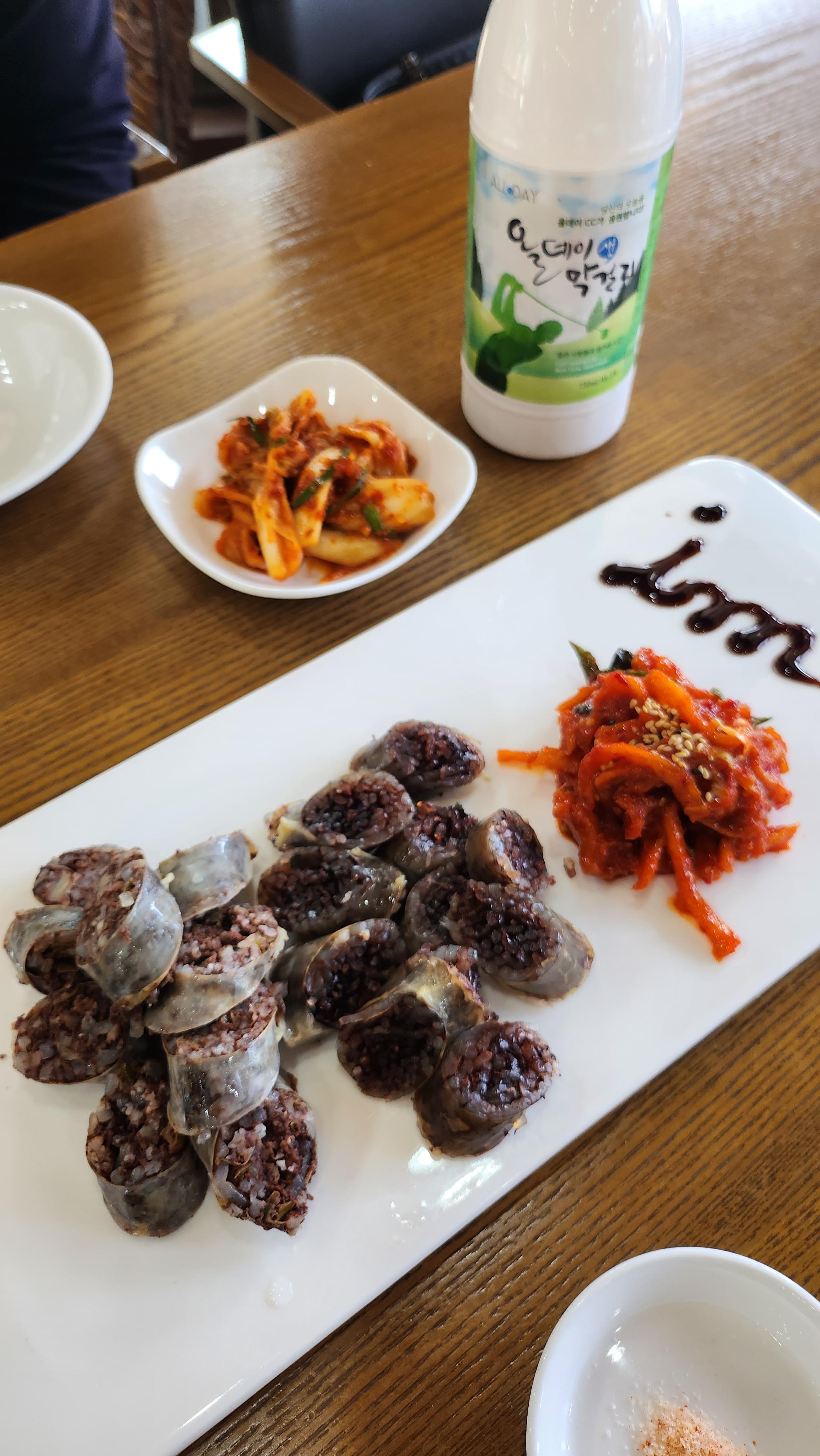 명태 회무침 + 순대에 올데이 막걸리를 먹었습니다. 처음보는 조합이었는데 음식이 막걸리와 잘 어울리네요!