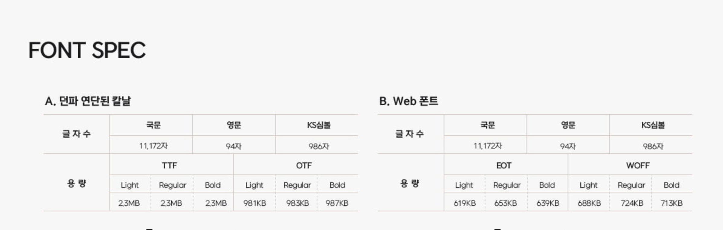 - 서체는 개인 및 기업 사용자를 포함한 모든 사용자에게 무료로 제공되며 자유롭게 사용 및 배포하실 수 있습니다. (상업적인 용도로 사용 가능) 단, 임의로 수정, 편집 등을 할 수 없으며 배포되는 형태 그대로 사용해야 합니다.