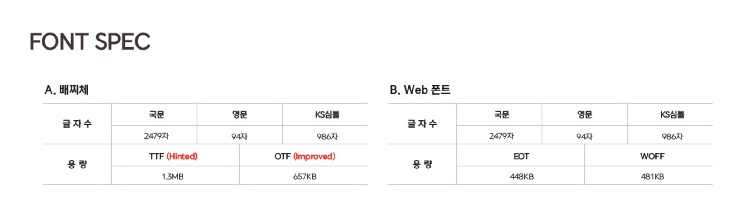 - 서체는 개인 및 기업 사용자를 포함한 모든 사용자에게 무료로 제공되며 자유롭게 사용 및 배포하실 수 있습니다. (상업적인 용도로 사용 가능) 단, 임의로 수정, 편집 등을 할 수 없으며 배포되는 형태 그대로 사용해야 합니다.