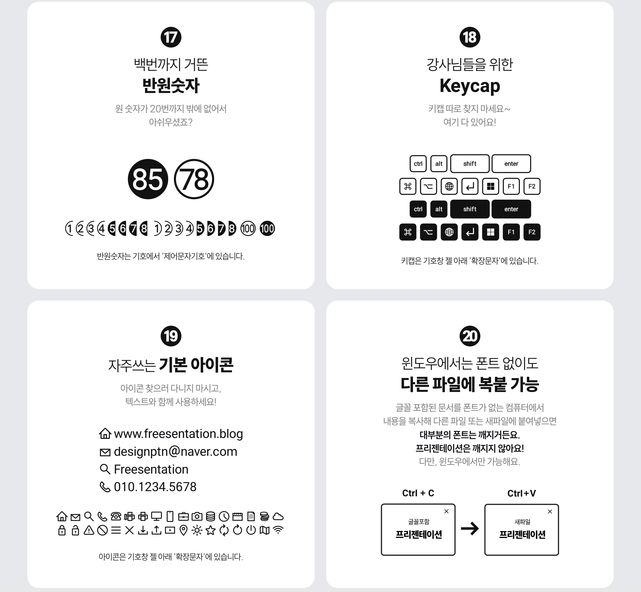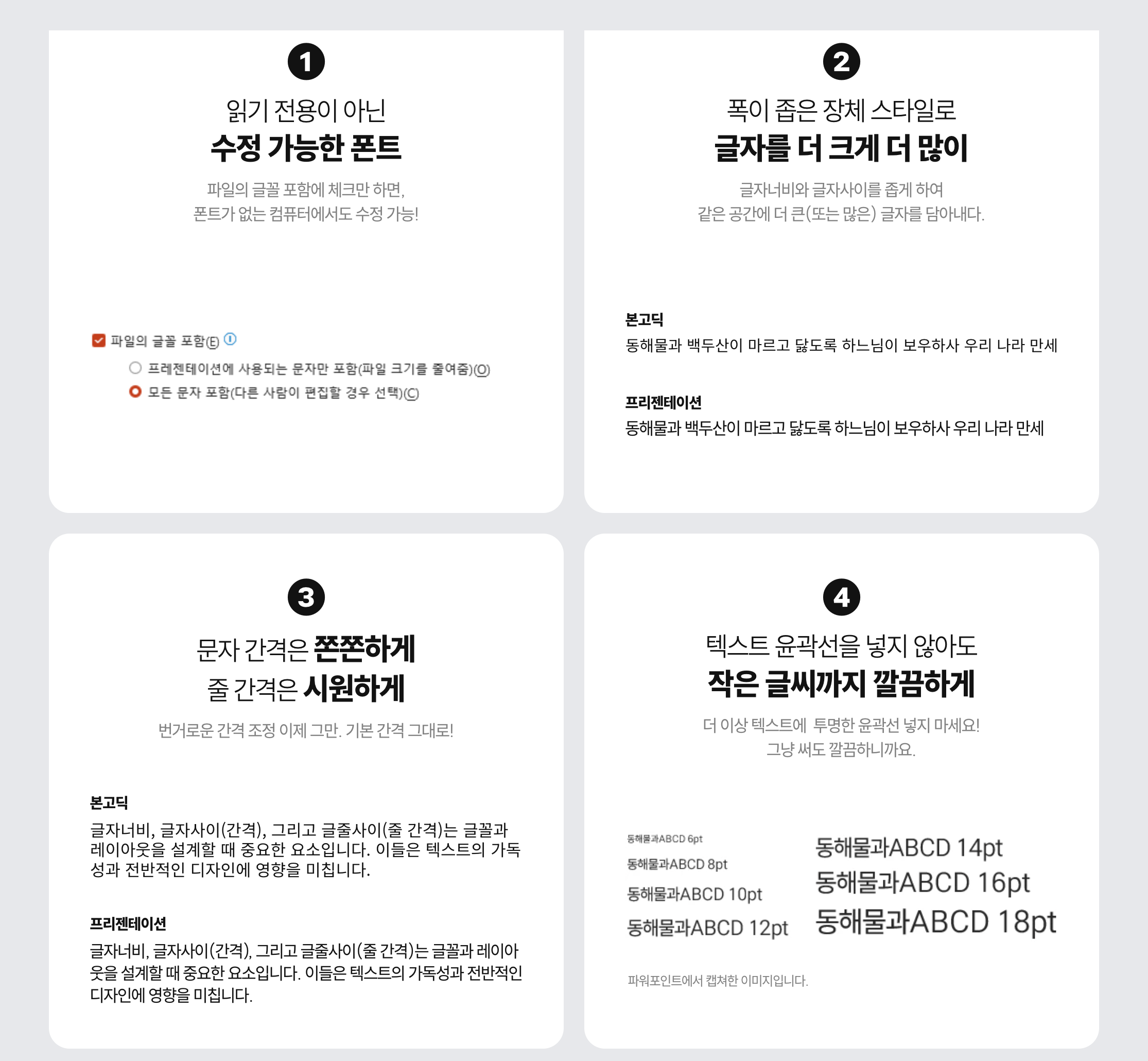 프리젠테이션 폰트는 파워포인트 사용성을 중심으로 만들어졌습니다.