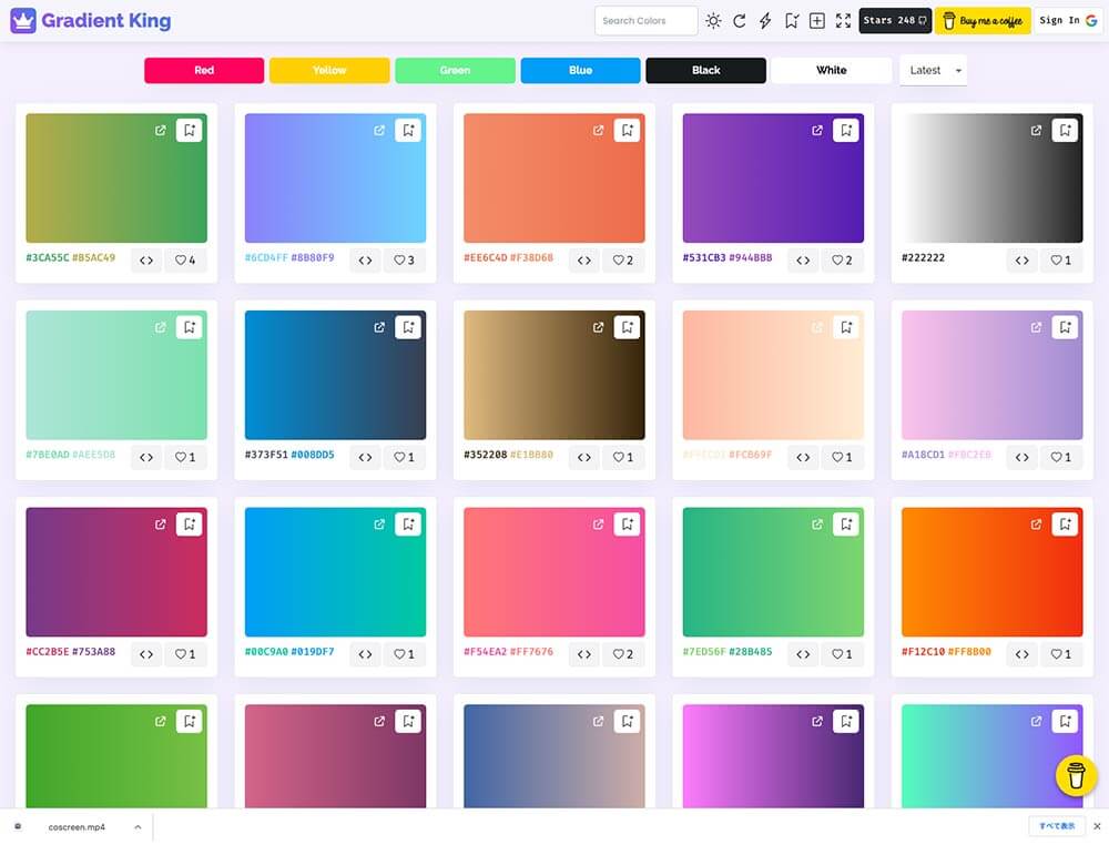 100 여종의 아름다운 CSS 그라데이션을 모은 라이브러리에서 원하는 그라데이션을 선택하면 CSS를 복사 - 붙여 넣기 할 수 있습니다.