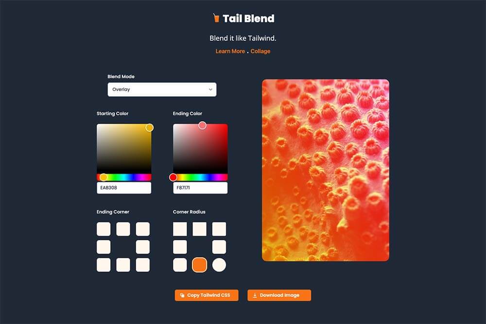 CSS mix-blend-mode속성을 실시간으로 미리 볼 수 있는 온라인 도구입니다. 취향에 맞게 색상이나 이미지 등을 변경할 수 있습니다.