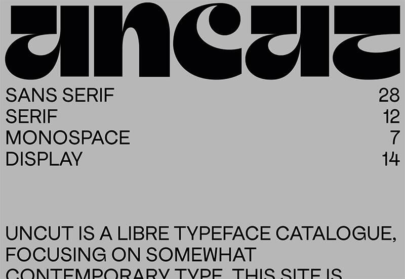 유니크하고 모던한 서체 카탈로그입니다. 산세리프와 세리프, 모노 스페이스, 디스플레이 서체 중에 선택해 다운로드 할 수 있습니다.