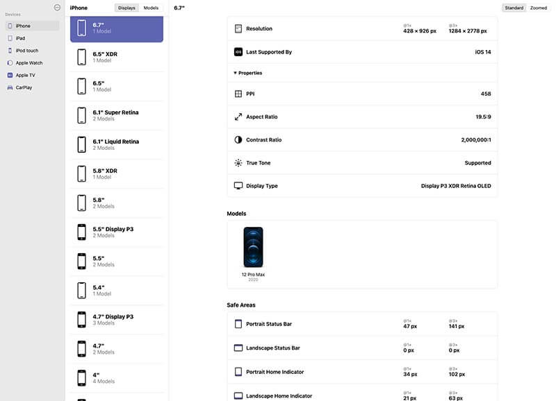 iPhone과 iPad, Apple 시계, Apple TV 등 모든 Apple 장치의 화면 크기와 상세 스펙을 정리해 확인할 수 있는 치트 시트입니다.