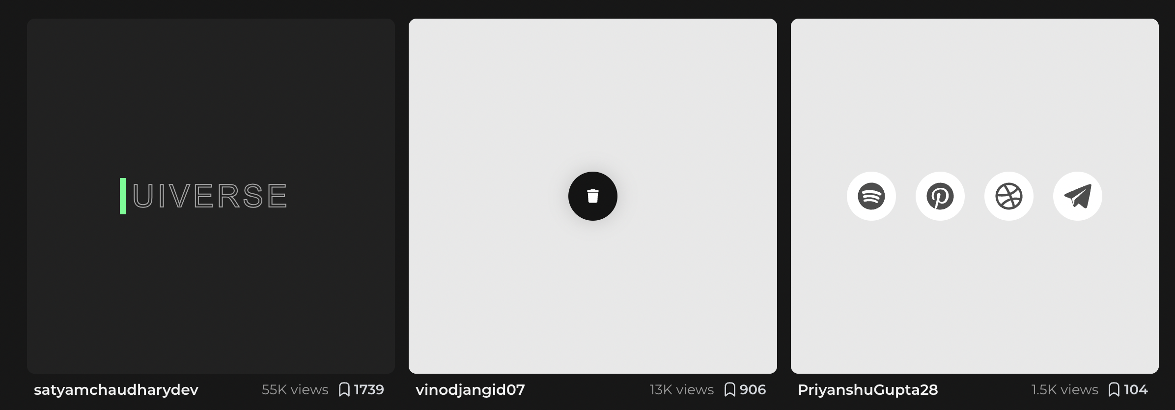 UI(사용자 인터페이스)와 Universe(우주)를 조합한 uiverse는 4000개 이상의 UI 엘리먼트를 개인 또는 기업이 상업적으로 무료로 이용할 수 있는 사이트입니다.